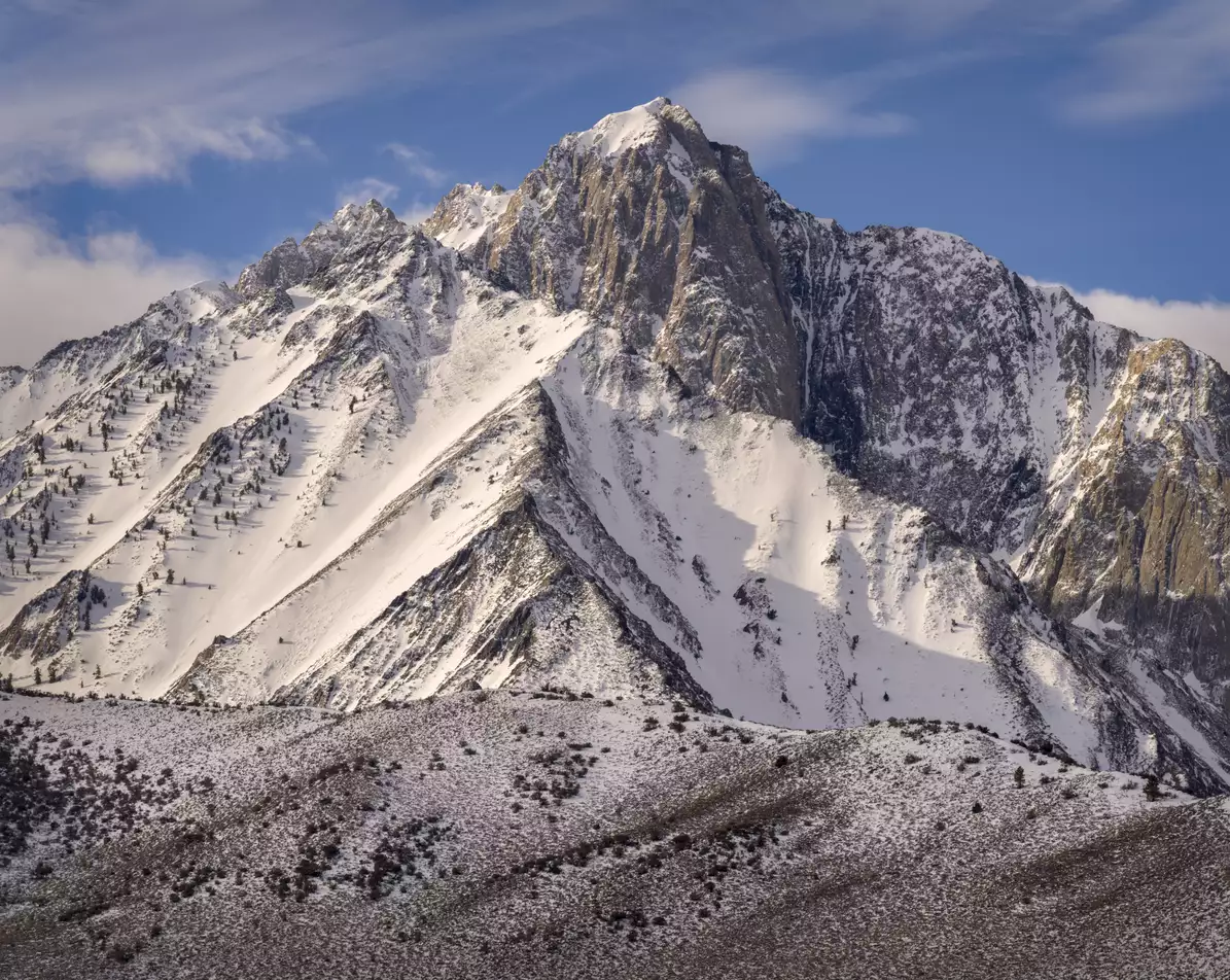 The visible portion of this massive and spectacular mountain face of the ridge variously known as Lyskamm or Liskamm, and considered a portion of the Monte Rosa massif, most of which is off to the left, just barely includes a full thousand meters of height (over 3,200 feet). Italy is on the other side. The far side of the portion of the massif which is off to the left drops down the largest face in Europe, a 7,000 foot amphitheater-like face with apparently an almost 70 degree slope. The highest summit in the Monte Rosa massif, Dufourspitze at 4,634 m (15,203 ft), which is 107 meters higher than the highest one on this ridge, is second in height only to the summit of Mont Blanc in the European Alps.