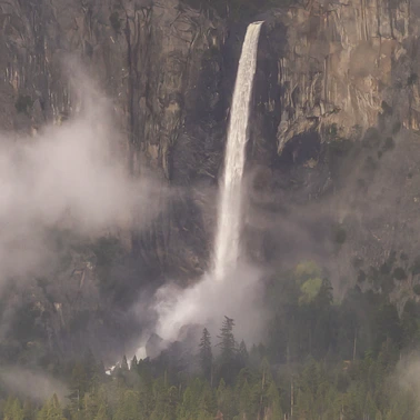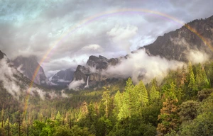 Rainbow, clearing spring storm, Yosemite, California