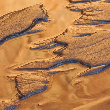 I once happened upon a curiosity which I have been unable to explain to this day. I have long been known for loving mud. Actually, what I love are the patterns and reflections that I find in the beds of rivers and streams, where the water has formed a rippling surface of sediment. The central basin of the Colorado excels with such muds, actually made of very fine sands. On one knapsack trip in 1985, I came upon a delightfully promising scene. I quickly began to create a composition consisting mainly of the streambed I had been walking up, but while looking at the dim and inverted image on the groundglass of the camera, I noticed that the patterns had mostly vanished. Standing up, I saw that the stream flow had increased, and the patterns that I had enjoyed were mostly inundated and no longer of artistic interest. I began to put the gear away to continue hiking, but when I glanced back at the stream I saw the patterns begin to re-appear. Out came the camera again. I discovered that each twelve minutes the stream would cycle up and down, approximately doubling then halving its flow. I watched it complete five cycles, and made several variations of the image at different water heights. No wind blew either up- or down-canyon. No gushing spring existed upstream with its own mysterious cycle. No earthquake in progress. No cyclical, local shifting of the force of gravity. No way to explain it.
